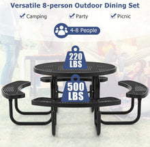 8-Person Dining Choice: The 45" circular picnic table comes with 4 curved benches, providing seating for 8 individuals. Each bench can hold up to 500 lbs, while the table has a maximum weight capacity of 220 lbs.