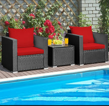 • Load image into Gallery viewer, Heavy Duty Steel Frame Modern Beautiful 3-Piece Patio Furniture Wicker Rattan Conversation, Relaxing Set With Thick Comfy Cushions, 5 Colours