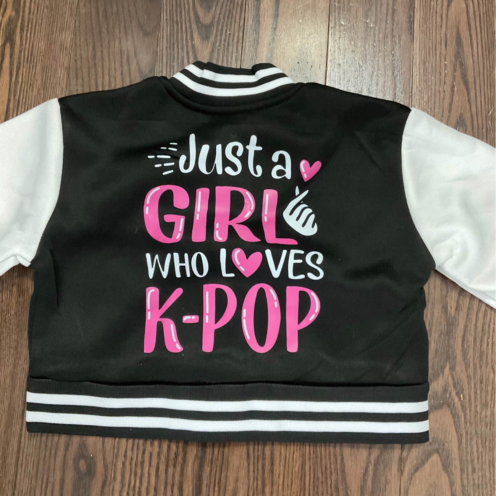 The group everyone is talking about! The songs that are always on repeat! This super cute crop style varsity jacket is sure to get your little all smiles.